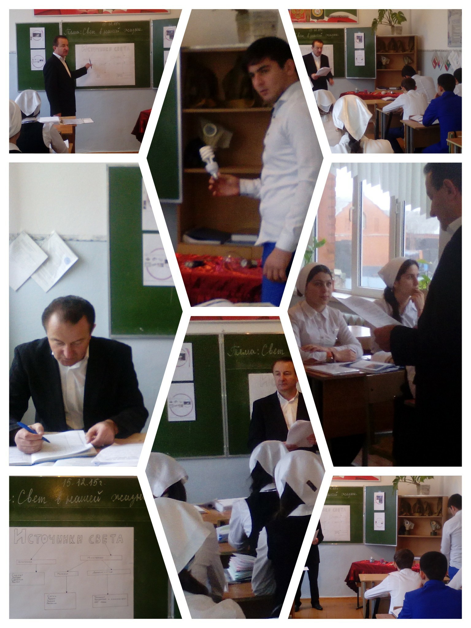 15.12.2015В МБОУ «Кади-Юртовская СШ им.Р.Ф.Умарова» 15.12.2015г проведен Всероссийский тематический урок «Свет в нашей жизни».