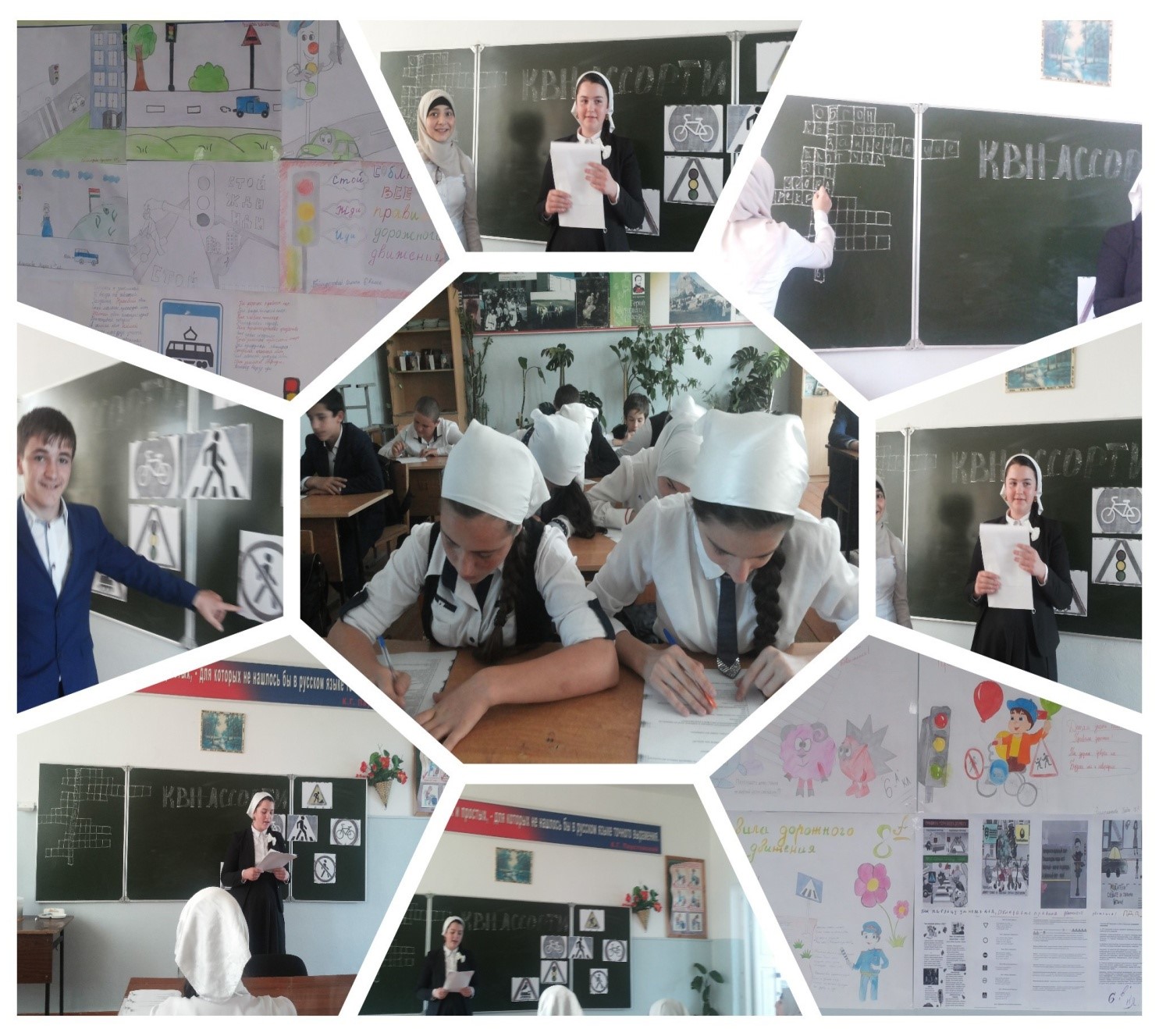 Провели конкурс рисунков «Безопасное движение». Дети рисовали про мир на дороге Рисунки получились яркими, красочными и призывали всех выполнять Правила дорожного движения. Классы выпустили тематические газеты 5-е классы «На школьных перекрестках», 6-е классы «Для вас юные велосипедисты», 7-е классы «Светофор», 8-е классы «Азбука юного пешехода». Ежедневно на общешкольных линейках проводились пятиминутки по правилам дорожного движения. Классные руководители провели единый классный час по теме «Безопасность на дороге зависит от каждого из нас», где учащиеся рассказывали о дорожных знаках, о том, как вести себя на дороге. Во всех классах провели срез знаний правил безопасного поведения на улицах и дорогах. Общий показатель успеваемости по итогам контрольного среза знаний по ПДД составил 84,7 %. Инспектор ПДН Магомадов А. беседовал с учащимися по правилам дорожного движения. Провели общешкольное родительское собрание «Безопасность детей- забота взрослых». На собрании выступили директор школы Домбаева М.А. руководитель ОБЖ Мавсаев И.И.