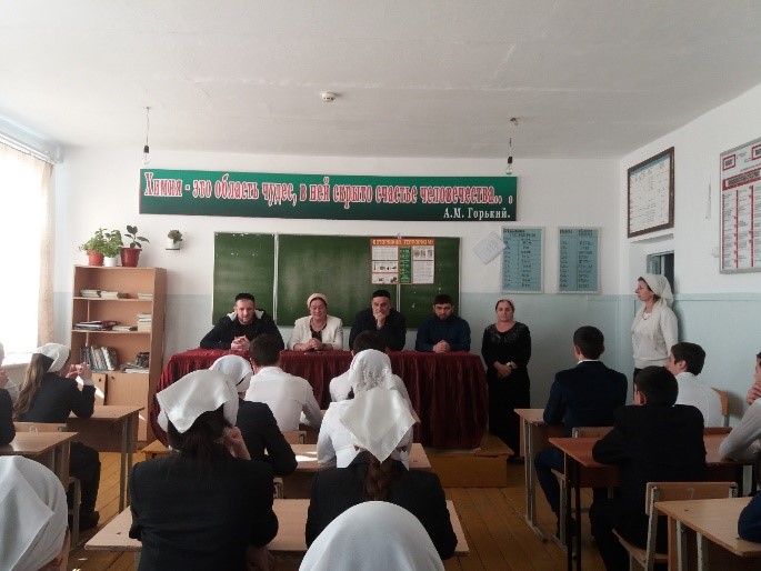31.01.201731 января 2017г.состоялась встреча учащихся с Председателем Совета старейшин Умаровым Т.С. и с имамом села Арсункаевым Р.М.
