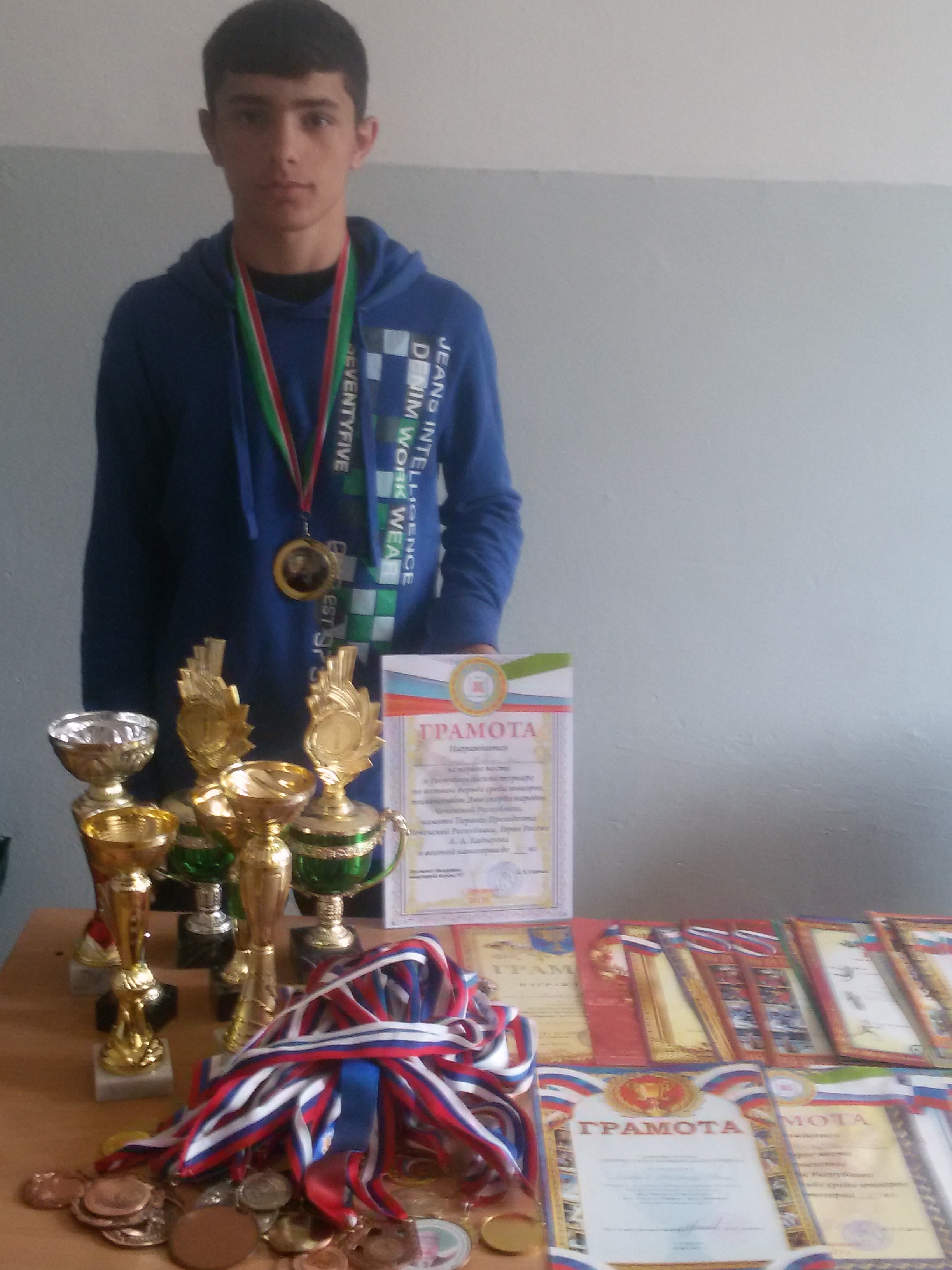 15.05.2017Ученик 11 класса, Тулуев Магомед-Эми занял 1 место в Республиканском турнире по вольной борьбе среди юниоров, посвященном Дню скорби народов Чеченской Республики, памяти первого Президента Чеченской Республики, Героя России А.А.Кадырова. Так держать Магомед-Эми!
