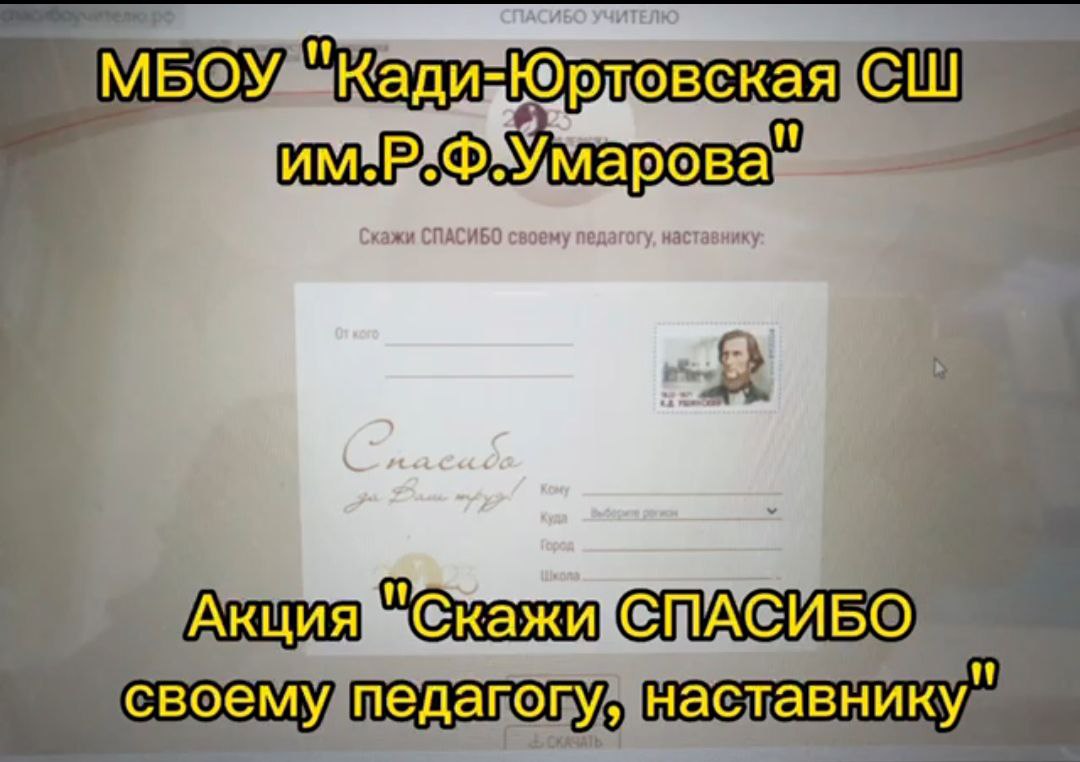 07.06.202307.06.2023г учителя школы приняли участие в акции «Скажи СПАСИБО своему педагогу, наставнику». Старт акции благодарности педагогам и наставникам «Спасибо учителю» дал министр просвещения Российской Федерации Сергей Кравцов 25 мая на онлайн-конференции «Суверенная система образования: итоги учебного года». Каждый смог поблагодарить любимого педагога, наставника на сайте https://спасибоучителю.рф/ , отправив открытку с благодарностями и пожеланиями.