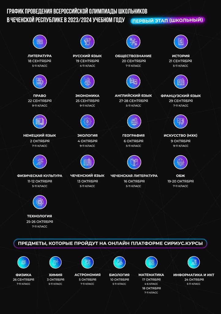 График проведения Всероссийской Олимпиады школьников в Чеченской Республике в 2023-2024 учебном году