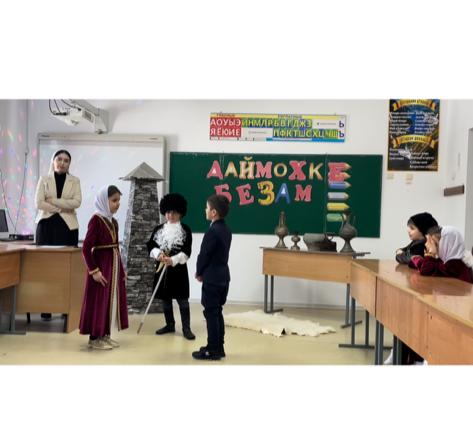 7 февраля 2023года во 2в классе в рамках Года чеченского языка проведено внеклассное мероприятие «Даймахке безам» молодым педагогом Байсалуевой Д.Ж.