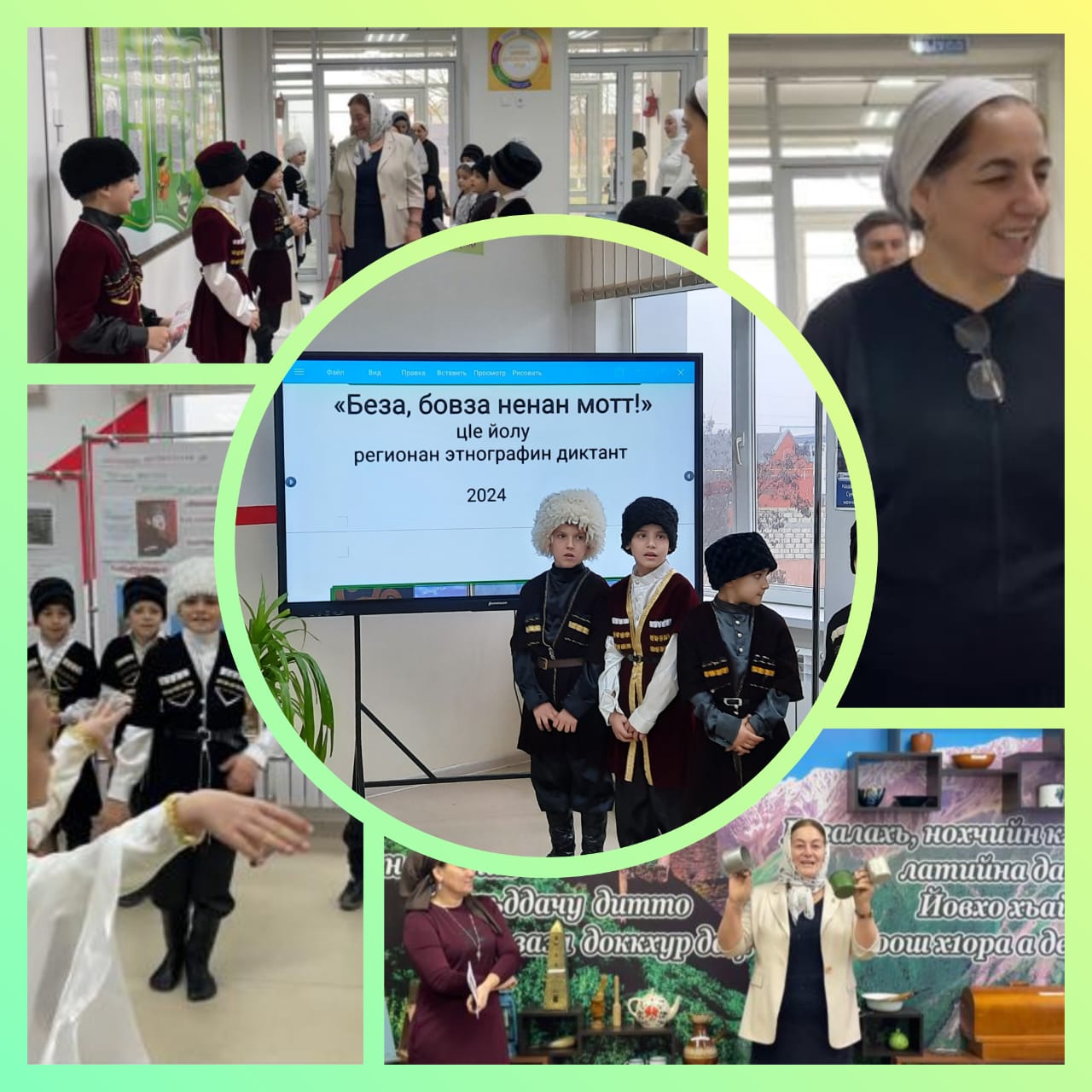 16.02.2024В рамках празднования Международного дня родного языка, с целью повышения интереса к изучению родного языка и литературы, истории и этнографии Чеченской Республики 16 февраля 2024года в МБОУ «Кади-Юртовская СШ им.Р.Ф.Умарова» писали Региональный этнографический диктант «Беза, бовза ненан мотт!». Участниками диктанта были родители, учителя и обучающиеся. У входа их встречали учащиеся в национальных костюмах и вручали буклеты. Мероприятие проходило в праздничной обстановке.