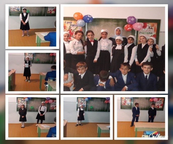 Классные руководители провели тематические классные часы «Помни прошлое-выбирай будущее», «Профессия- учитель», «С любовью к вам, учителя». В этот день школа была празднично оформлена, в фойе были вывешены поздравительные газеты, воздушные шары. Проведен праздничный концерт. Ребята были активны и с удовольствием показывали номера художественной самодеятельности, пели песни, читали стихи.