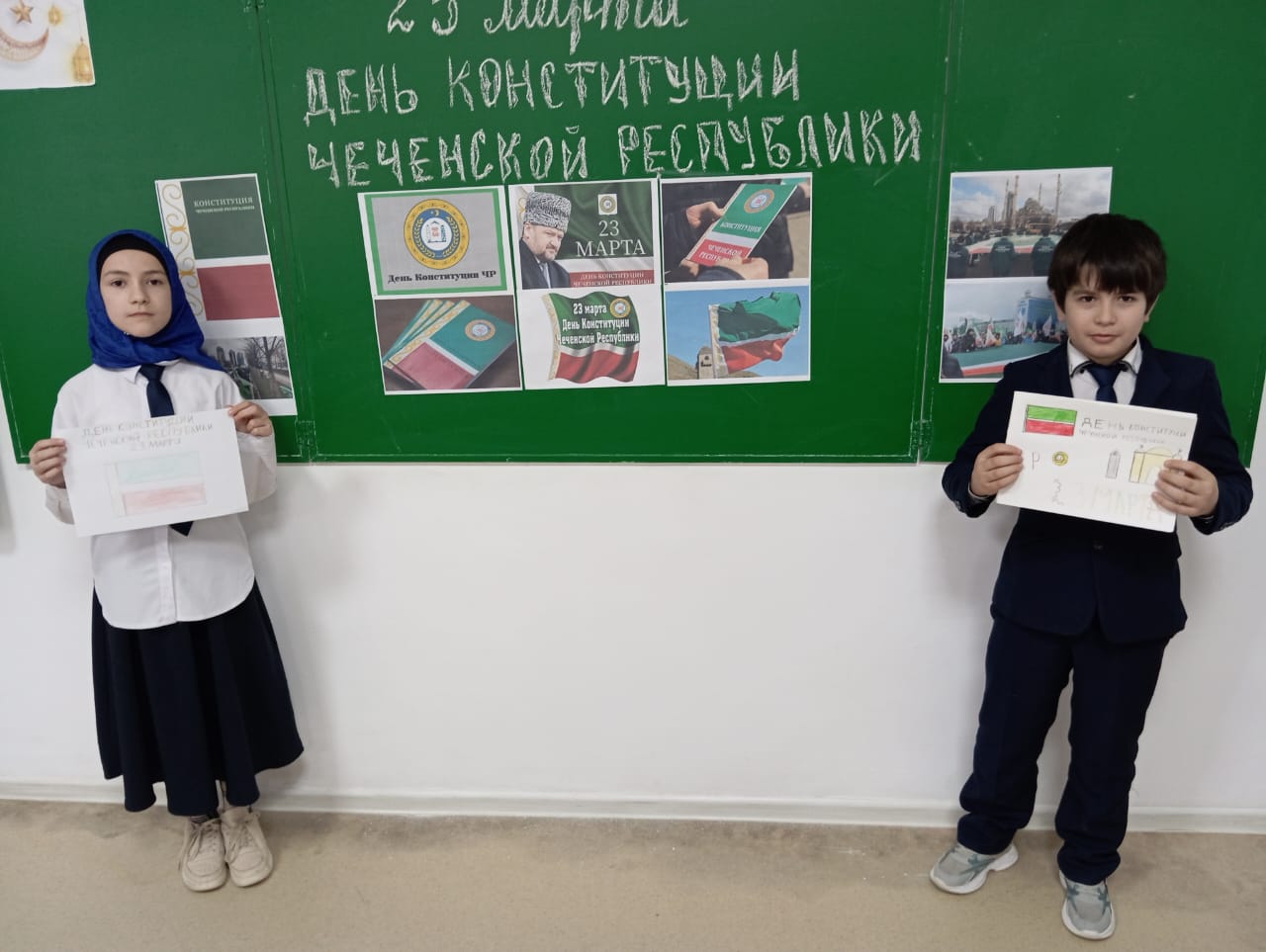 22 марта 2024г учитель Гайалиева Л.Л. провела в своем 4А классе классный час, посвященный Дню Конституции Чеченской Республики