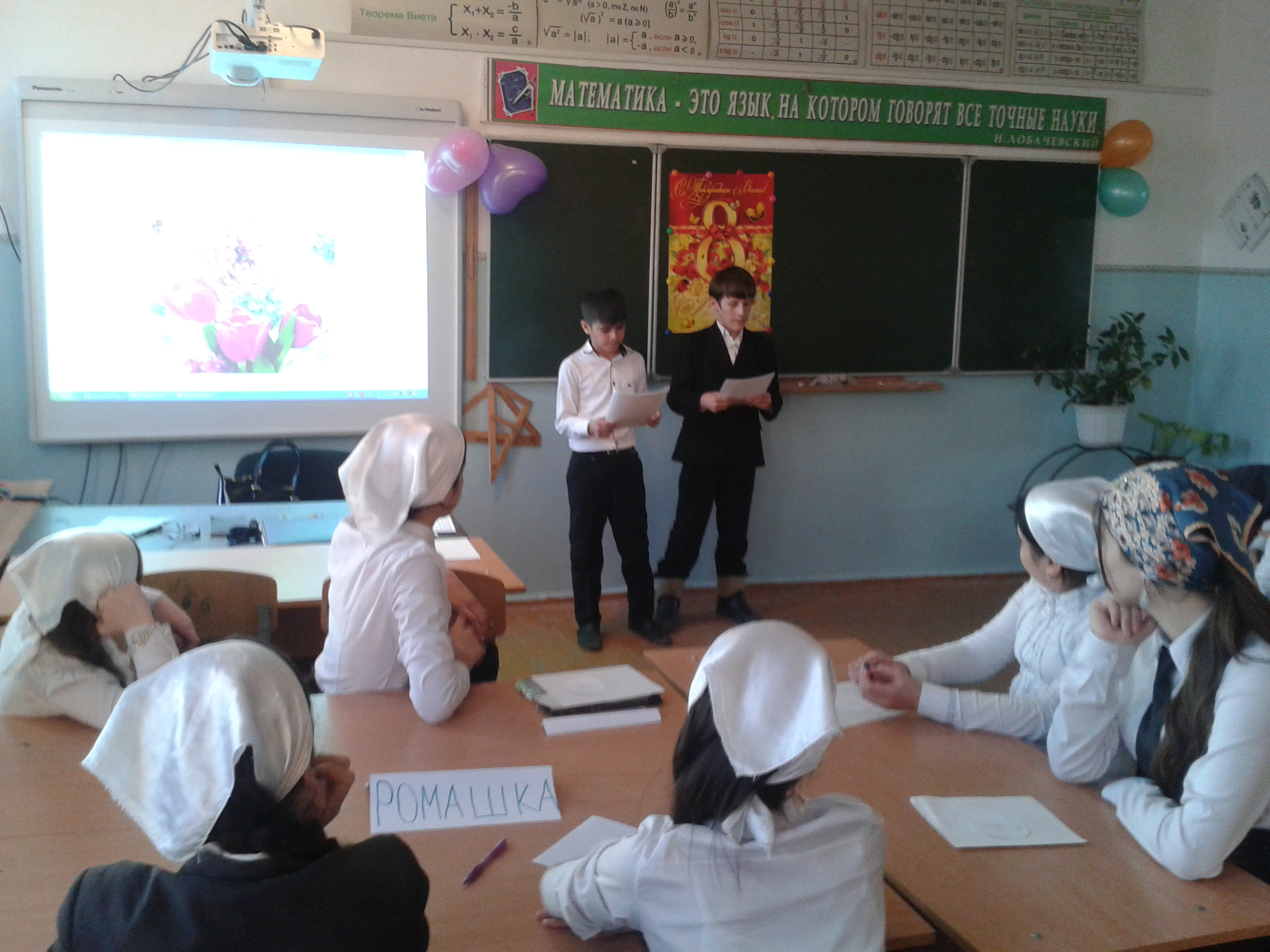 07.03.2015С 27.02 -6.03.15г.в школе прошло ряд мероприятий , посвященных Международному Женскому дню 8 марта. Во всех классах проведены беседы, классные часы. Классные руководители подготовили для мам и девочек развлекательную программу. Интересно прошли классные часы в4Б классе (кл.рук.Гусейнова З.), в 1А классе (кл.рук.Сулейманова З.А.), во 2Б классе (кл.рук. Вараева Р.), в 3Д классе (кл.рук.Лепиева Т.Х.), в 5В и 5Гклассах( кл. руководитель Самбиева М.Л.) в 6 Б классе (кл.рук.Мавсаева А.М.),в 7В классе (кл.рук. Исакова М.Д..), в 7 Б классе( кл.рук. Гачалаева С.), в 8Б классе (кл.рук.Шабазова М.Дж..),в 8В классе (кл.рук.Абакаева Х.), в 9 Б классе (кл.рук.Тутуева Т.Д.)