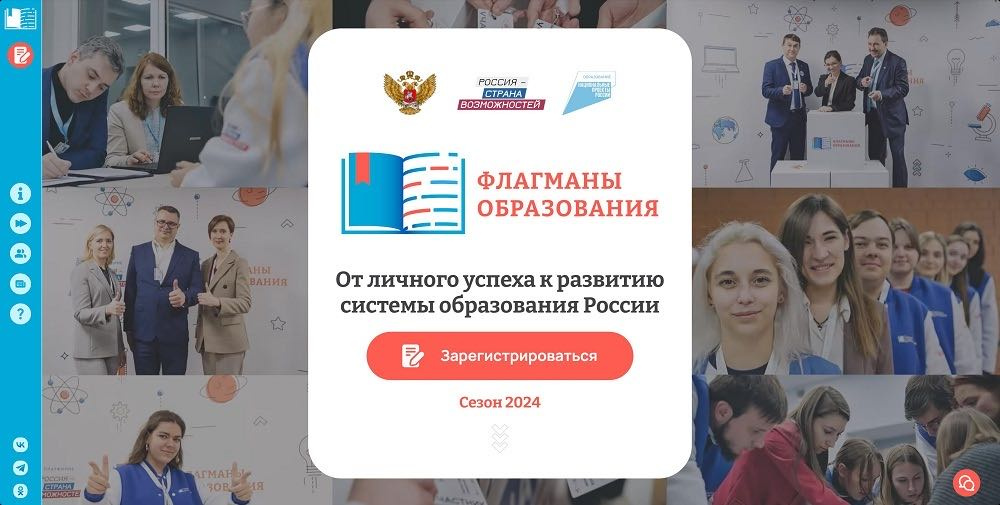 07.05.2024ПРОДОЛЖАЕТСЯ ПРИЕМ ЗАЯВОК НА УЧАСТИЕ В НОВОМ СЕЗОНЕ КОНКУРСА «ФЛАГМАНЫ ОБРАЗОВАНИЯ» ПРЕЗИДЕНТСКОЙ ПЛАТФОРМЫ «РОССИЯ – СТРАНА ВОЗМОЖНОСТЕЙ»
