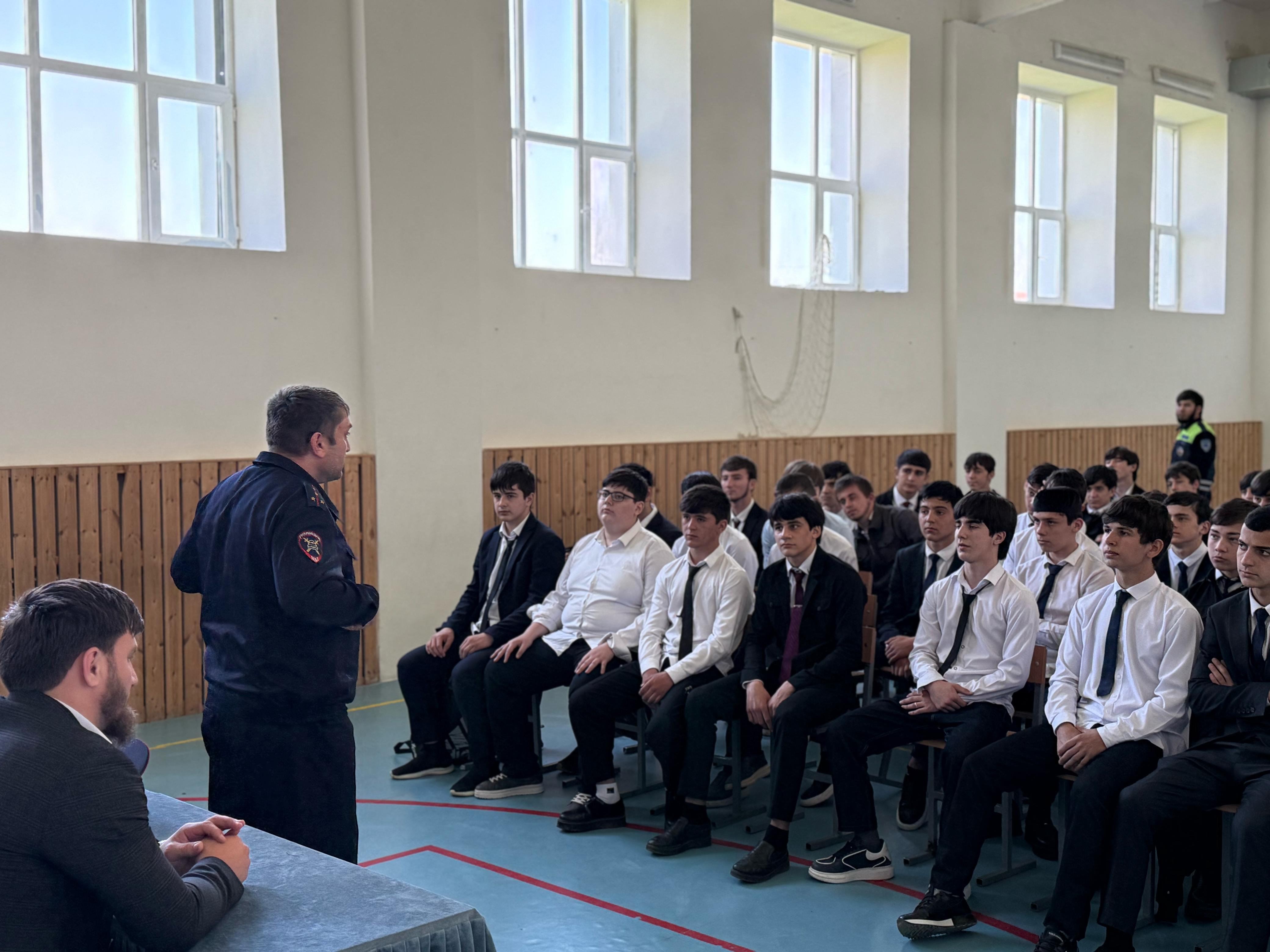 Выступив перед школьниками, инспектор ознакомил школьников со статистикой ДТП с участием детей и обозначил основные причины дорожно-транспортных происшествий. Устарханов К.М. рассказал о том, как правильно вести себя на дорогах, пешеходных переходах и в общественном транспорте, рекомендовал использовать на одежде светоотражающие элементы, рассказал о детских удерживающих устройствах для автотранспорта и необходимости их использования. В ходе беседы сообщил о том что, многие дети, не имея водительских прав, управляют транспортными средствами. Инспектор напомнил о правилах передвижения на велосипедах, самокатах, о запрете езды за рулем детям до 18 лет. В конце встречи Вахарагов А.Т., ведущий специалист отдела по общим вопросам МУ «Управления образования Гудермесского муниципального района» пожелал детям быть осторожными на дороге.