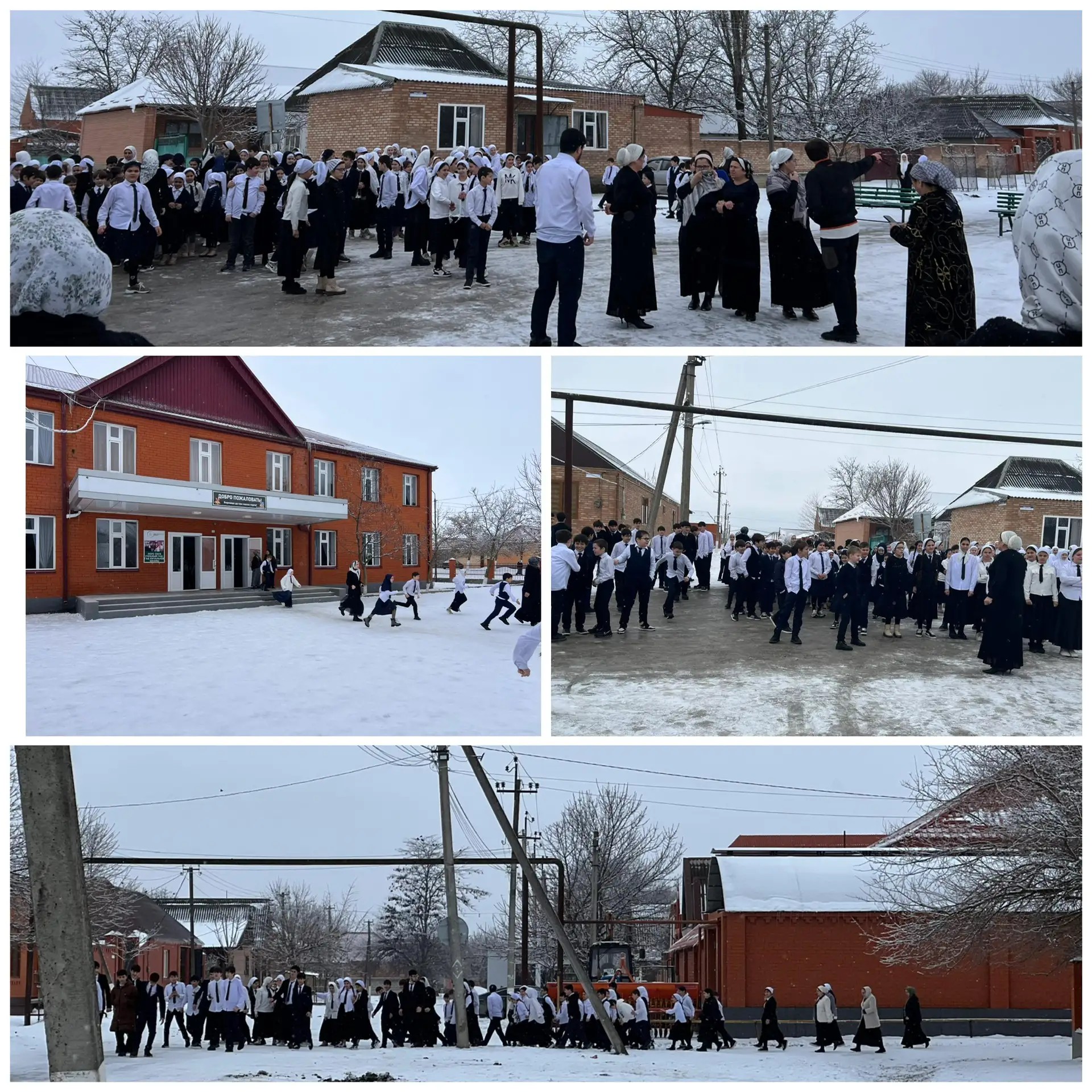 20.01.2026МБОУ "Кади-Юртовская СШ им.Р.Ф. Умарова» провели совместно с отделом в Гудермесском районе УФСБ России мероприятие по эвакуации. Такие учения важны для отработки действий персонала и учащихся в случае чрезвычайных ситуаций, включая пожары, угрозы террористического характера или другие опасности.