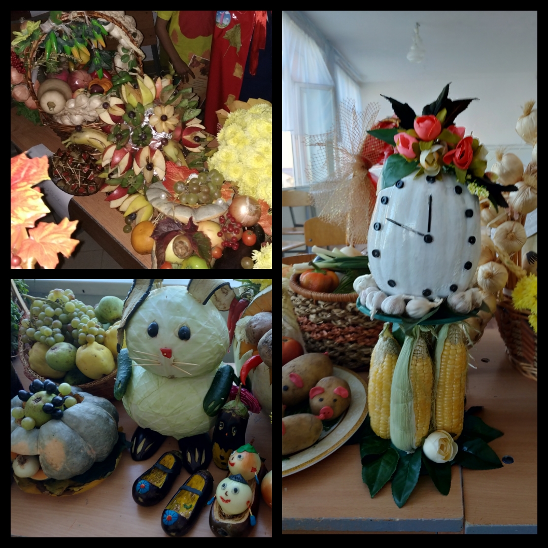 Осень - это прекрасная, красива пора, когда опадают листья, собирают урожай. По этому поводу, в фойе школы 24 октября прошла выставка детских поделок "Дары осени".