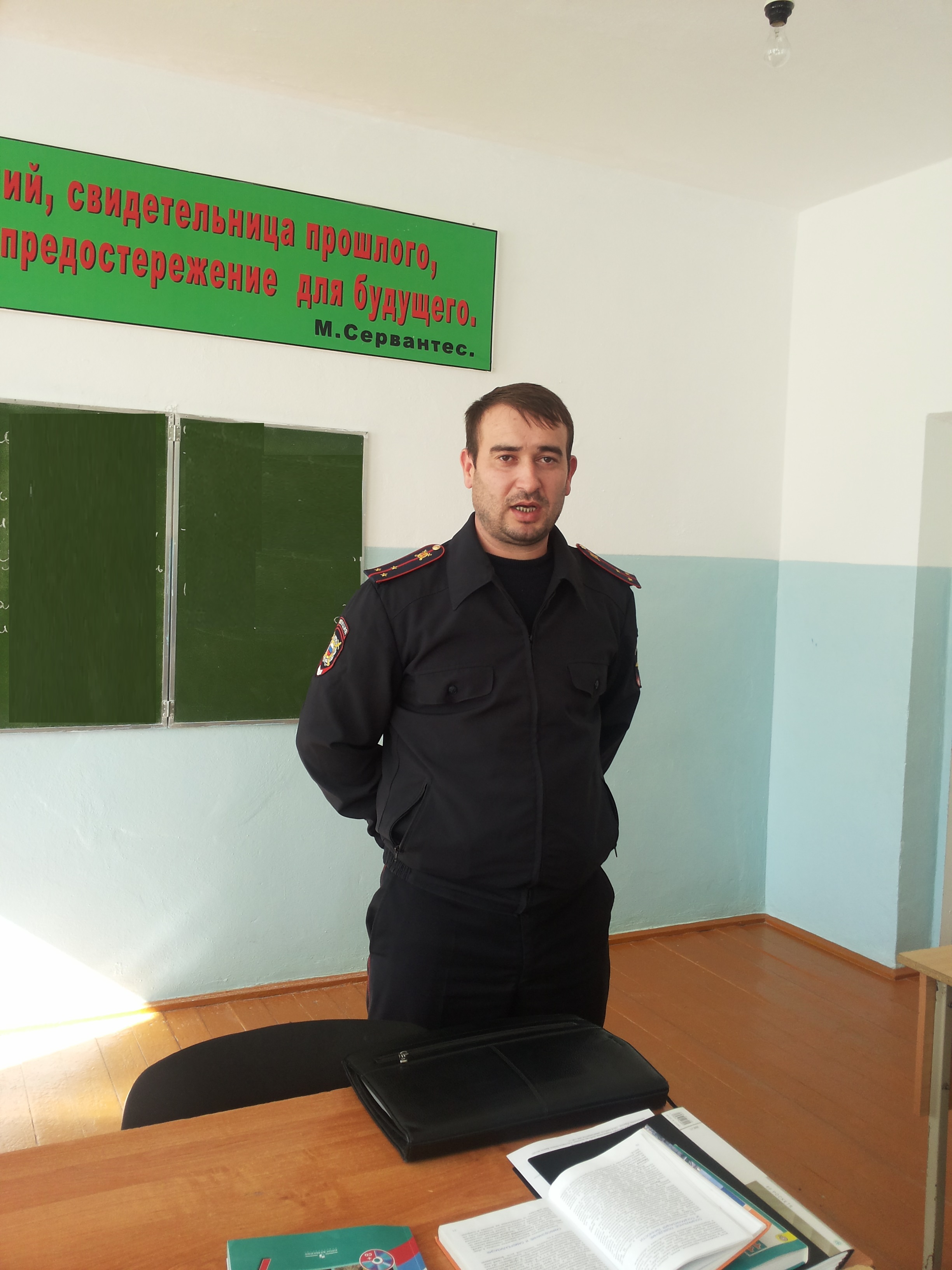 10.07.2015В МБОУ «СОШ им.Р.Ф.Умарова Кади-Юртовского с.п.» 10.07.2015 года состоялась встреча инспектора по делам несовершеннолетних Магомадова А. с учащимися во время летних каникул. Тема беседы была направлена на пропаганду здорового образа жизни, недопущение травмирования и предупреждение противоправных действий в отношении детей.Сотрудник полиции подробно рассказал школьникам о правилах поведения в период летних каникул. О правилах разведения костров или мерах безопасности при лесных пожарах. О правилах поведения на водоемах, где нужно находиться только в сопровождении взрослых. Что делать если началась гроза. Как вести себя в городе: на улицах, наземном транспорте. Напомнил о соблюдении правил дорожной безопасности во время езды на велосипеде или роликах. Также ребятам давались советы и рекомендации как не стать жертвой преступления или быть вовлеченным в его совершение, отметив с какого возраста и за какие правонарушения несовершеннолетние могут быть привлечены к ответственности. Инспектор Магомадов Адам доступно отвечал школьникам на все интересующие их вопросы. Встреча прошла с позитивным настроем и открытостью, как со стороны инспектора ПДН, так и учащихся.